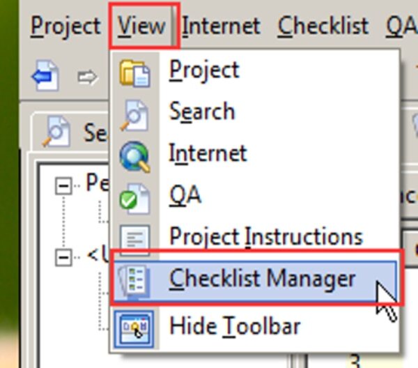 設定するには、[View]タブで[Checklist Manager]をクリックし、右側カラムに表示される[ ]を右クリックして[Add]を選択し、該当のチェックリストをインポートします。