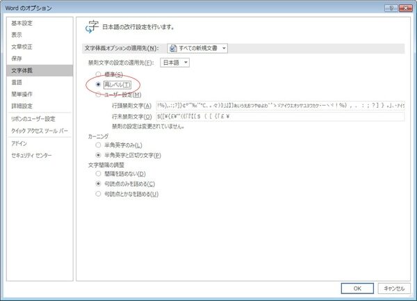 MS Wordでは、このような禁則処理を次の手順で簡単に設定できるようになっています。