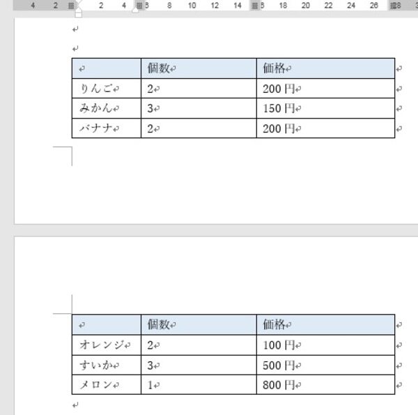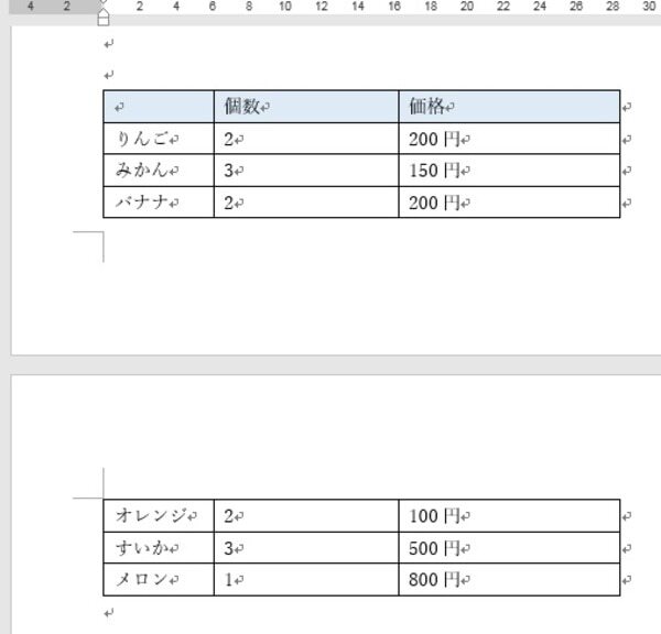 下の図のように、ドキュメントを作成している時に表がページをまたいでしまうことがよくあります。