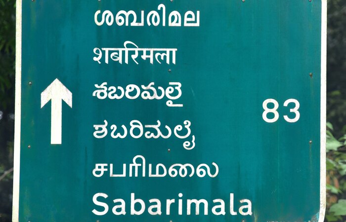 上記の看板はインドの南に位置するケララ州の道路標識です。「サバリマラ」という有名なお寺への標識となるのですが、一番上がケララ州の公用語マラヤ―ラム語、その下がヒンディー語、テルグ語、カンナダ語、タミル語、英語表記と続きます。(テルグ語、カンナダ語、タミル語はそれぞれインドの南に位置する州の公用語です。)上から3番目と4番目はかなり文字表記が似ていますが、上から2番目のヒンディー語とは全く似ていないことがお分かりいただけるか思います。