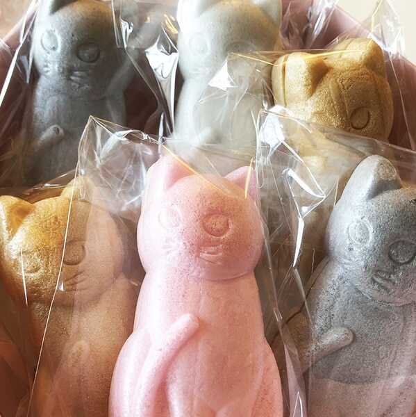 4色の猫の形をした可愛らしい最中で、猫好きにはたまらない一品です。