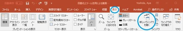 ①タスクバーの「表示」→「新しいウィンドウを開く」:一つのファイルを複数ウィンドウで開く
