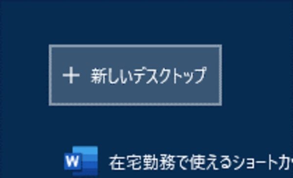 このショートカットキーを利用する前に、まず仮想デスクトップを作成する必要があります。デスクトップ画面最下部にあるタスクビューアイコンをクリック→「新しいデスクトップ」をクリック→仮想デスクトップが開きます。頻繁に参照するファイルを開いておきましょう。