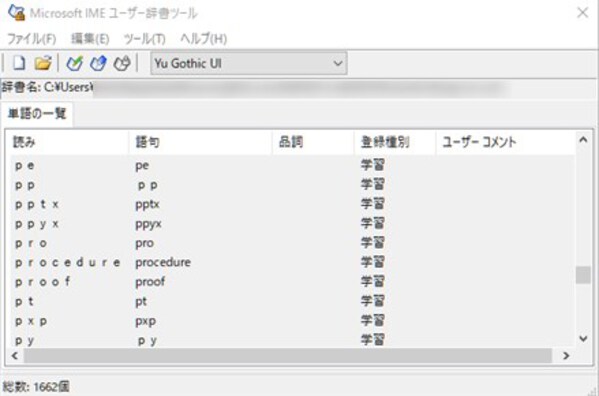 Microsoft IME では、文章入力で変換、確定した単語が自動的に学習され、次回の予測変換に反映される「学習機能」がデフォルトでオンになっています。頻繁に行う変換が記録されるのはとてもありがたいのですが、誤変換を繰り返すようになったり、変換されたくない結果がしつこく表示されるようになったりすることがあります。そういった場合は学習機能で蓄積された結果を一度リセットすることで変換しやすくなる場合があります。自分の登録辞書とは別になっていますので、変換候補が自分の意図したものではなくなった場合は削除してみることをお奨めします。