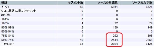 翻訳メモリやLiveDocsごとにマッチ率を解析します