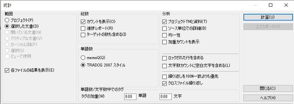 memoQのカウント基準で解析します(通常はこちらにチェックを入れます)