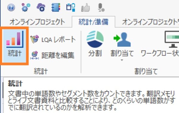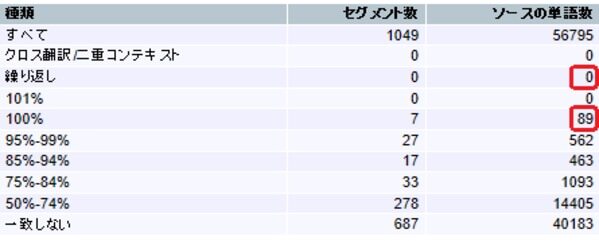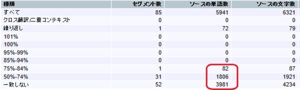 翻訳メモリの解析結果とは別に、セグメント・ワード・文字の総数を表示します