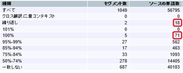 100%マッチのセグメントのうち、繰り返しである18セグメントが、「繰り返し」としてカウントされています。