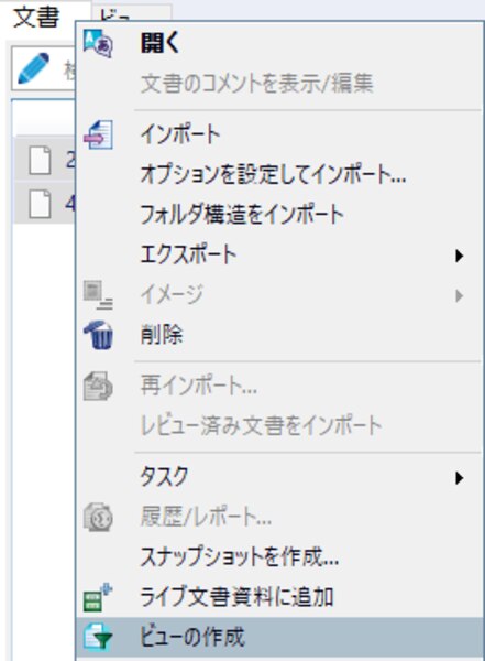 上記の機能を使用するには、以下の手順でビューを作成します。つなぎ合わせて開きたいドキュメントを選択し、右クリックから[ビューの作成]を選びます。