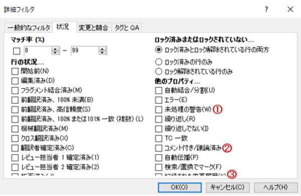 memoQには充実したフィルタリング機能があり、筆者も対訳チェックをする際によく使用しています。複数の条件を組み合わせてフィルタリングすることもできるため、状況に合わせてセグメントを抽出することができます。中でもよく使用するものをご紹介します。