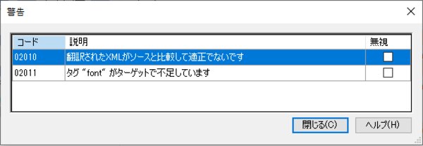 すでにご紹介しましたが、ターゲットセグメントでCtrlキーを押すと、ソースセグメントに含まれるタグがブロックごとに表示されます。挿入したいタグを選び、Enterキーを押すとカーソルの位置にタグが挿入されます。