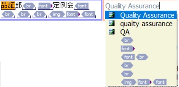 こちらはちょっとした小技です。ターゲットセグメントでCtrlキーを押すと用語マッチやブロック分けされたタグの一覧が表示されます。