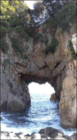 <足摺岬エリアの見どころのひとつ「白山洞門」。向こうに見えるのは太平洋です>
