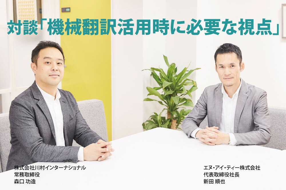 「機械による支援が正しい形」人手の翻訳でできることと機械にできることの違いをよく理解し、分野や用途に応じて柔軟に機械を活用することが望ましいが、その判断のポイントについて、エヌ・アイ・ティー株式会社の代表取締役社長、新田順也さんと意見交換をさせていただいた。