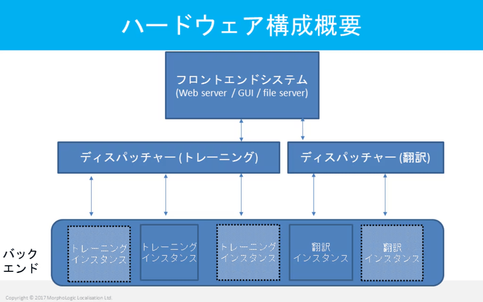 トレーニングおよび翻訳ジョブをバックエンド機のGPUに割り当てる機能