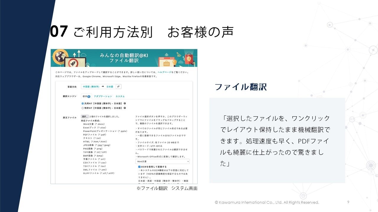国産ニューラル⾃動翻訳エンジン「みんなの⾃動翻訳@KI(商⽤版)」